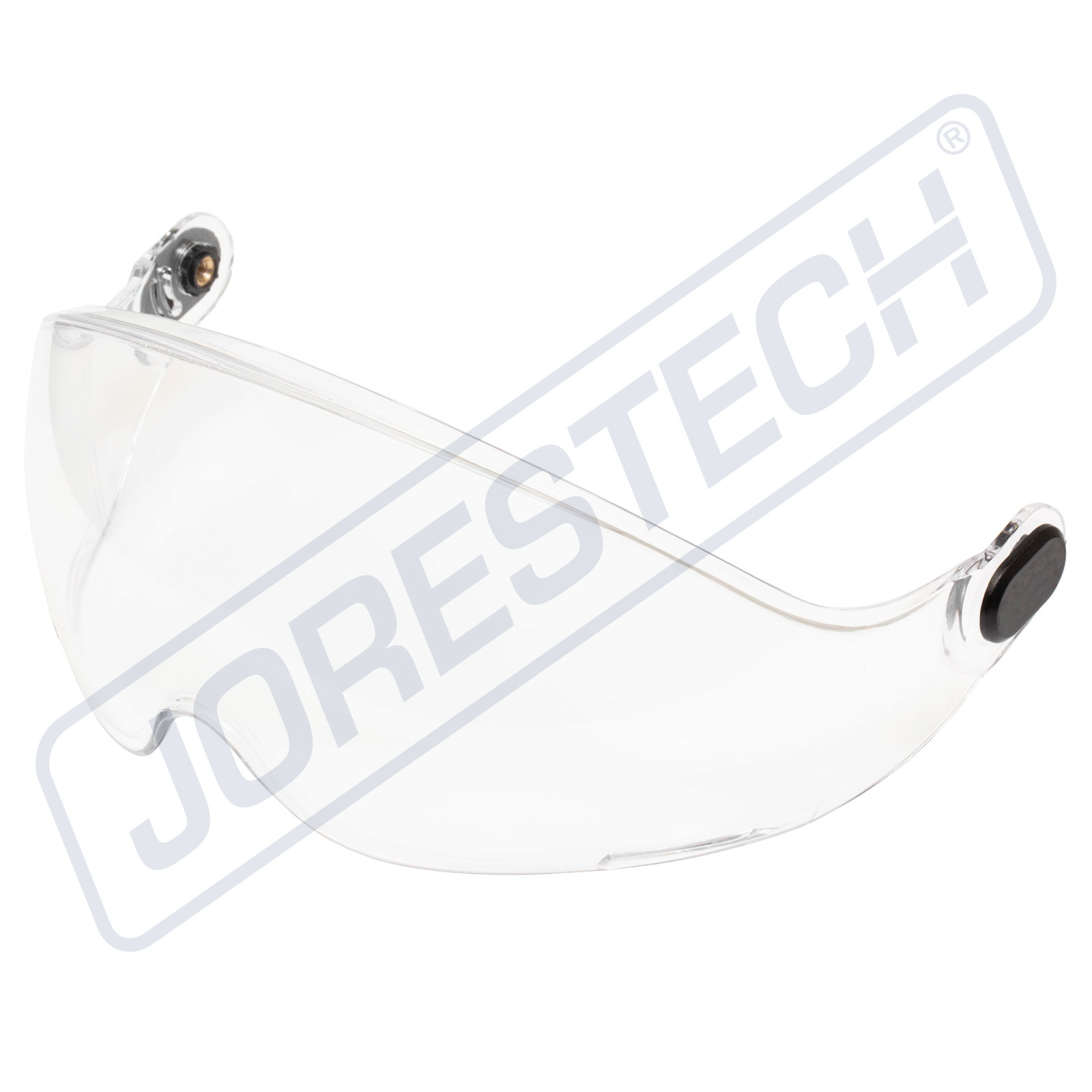 Enhance your helmet’s protection with the JORESTECH® Sliding Retractable Visor . This integral eye shield can be easily installed on your helmet with a few easy steps, providing protection that is there when needed but slides discretely away onto the body of the helmet when not in use. Simply slide your visor down while cutting, grinding, or when you need to prevent dust and particles from entering the eye. Made with high-grade polycarbonate, this visor offers excellent protection all while providing clear, transparent, and uninterrupted vision. Comfortable and well balanced, its innovative design provides great ventilation and allows enough space for sunglasses or reading glasses to be worn underneath. The unique combination of safety, comfort, and styling features make this the perfect accessory for your JORESTECH® Helmet.