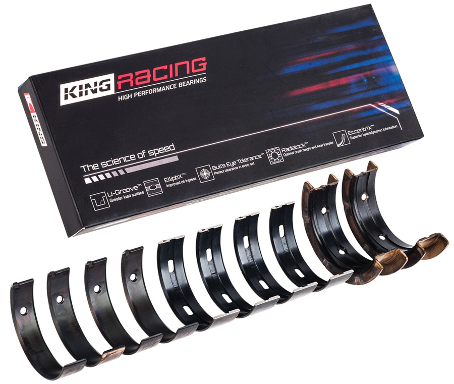 King Engine Bearings, a leading manufacturer of cutting-edge bearings since 1960, developed the King Racing line to improve engine bearing performance under extreme conditions. King Racing utilizes innovative research and development processes and rigorous lab tests, as well as on- track trials conducted by top racers. The King Racing line combines sport compact and domestic race engine bearings with ground-breaking geometric and metallurgical features.