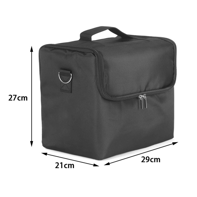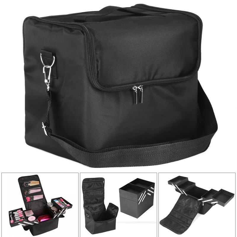 Features: Professional Multifunctional Soft Fabric Makeup Train Case with Shoulder Strap. Specifications: Color:Black Product Material:02# cloth bag Product Size:29*27*21cm Subtype:Bags/ Pouches Type:Bag Overall Dimensions: (28.5 x 21x 25.4cm) 11.22x8.27x10" Removable Inside Case Dimensions: 11"L x 7 1/2"W x 10"H (27.94 x 19.05 x 25.4cm) Each Tray Dimensions: 7 1/2"L x 5 1/2"W x 1 1/2"H (19.05 x 13.97 x 3.81cm) Bottom Portion Dimensions: 11"L x 7 1/2"W x 6 1/2"H (27.94 x 19.05 x 16.51cm) Package Includes: 1x Makeup Train Case 1x Shoulder Strap NOTE: silver support and black support will be delivered at random