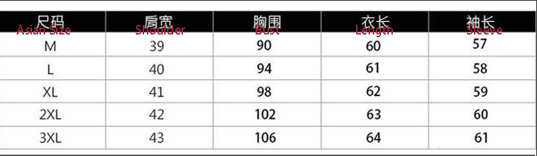 Men's Asian Size: M L XL 2XL 3XL 4XL 5XL