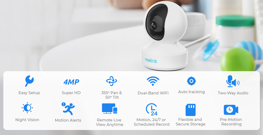 Watching over a large area is now becoming easier. Boasting 355° pan & 50° tilt and 4MP Super HD, E1 Pro can deliver the whole picture of your home, even better, in stunning clarity and vividness.