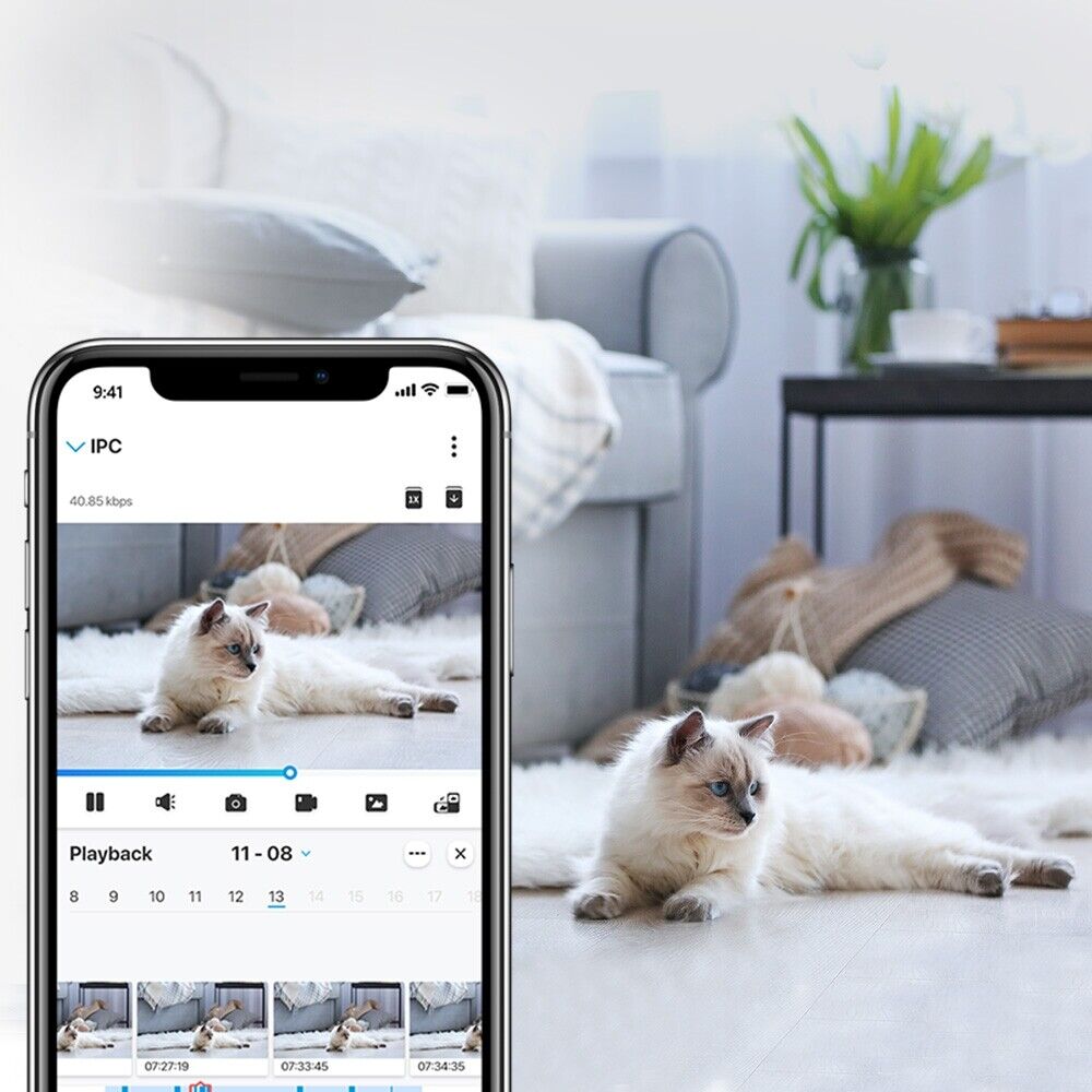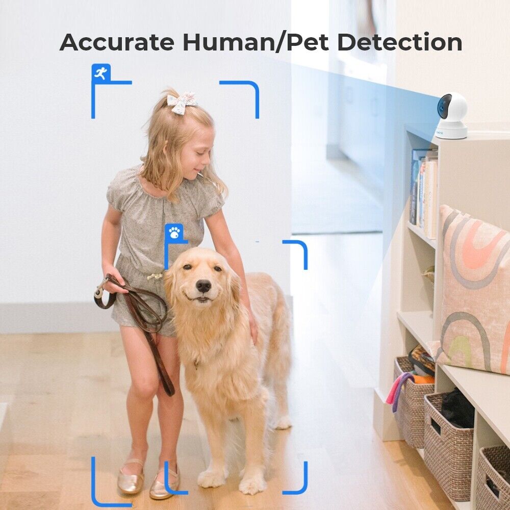 Once the camera detects a person or pet, the camera will send you instant alerts and automatically rotate the lens to follow their footstep. In this way, it better guarantees the safety of your babies, the elderly and pets by recording their daily activities and alerting you when someone breaks in.