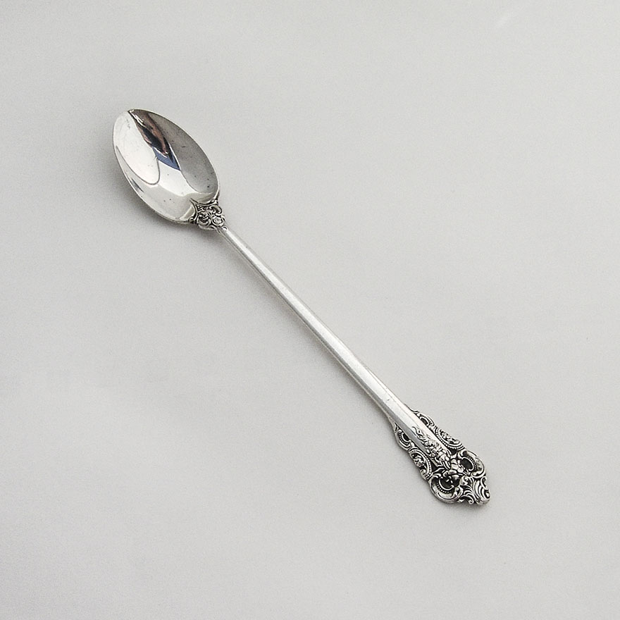 Wallace sterling silver infant feeding spoon in the Grande Baroque pattern, 1941.