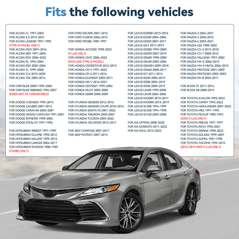 | 1998-2022 Honda Accord (5 Lug Only) | 1991-1995 Toyota MR2 |