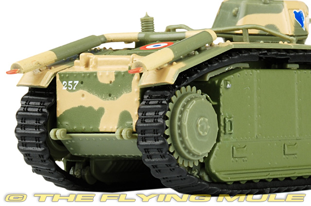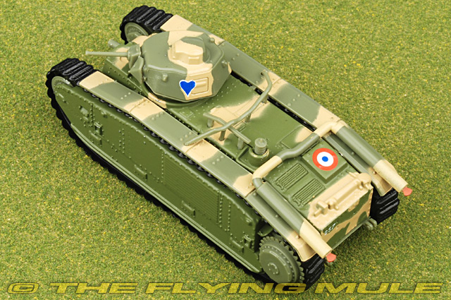 The Char B1 was a specialised heavy break-through vehicle, originally conceived as a self-propelled gun with a 75 mm howitzer in the hull; later a 47 mm gun in a turret was added, to allow it to function also as a Char de Bataille, a "battle tank" fighting enemy armour, equipping the armoured divisions of the Infantry Arm. Starting in the early twenties, its development and production were repeatedly delayed, resulting in a vehicle that was both technologically complex and expensive, as already obsolescent when real mass-production started in the late thirties of a derived version, the Char B1 bis. Of a second uparmoured version, the Char B1 ter, only two prototypes were built. Among the most powerfully armed and armoured tanks of its day, the type was very effective in direct confrontations with German armour in 1940 during the Battle of France, but a slow speed and high fuel consumption made it ill-adapted to the war of movement then fought. After the defeat of France captured Char B1 (bis)" would be used by Germany, some rebuilt as flamethrowers or mechanised artillery. Renault Char B1© Copyright 2003-2026 The Flying Mule, Inc. Amercom Combat VehiclesThe Amercom "Combat Vehicles" range presents affordable, ready made diecast models of light military vehicles in 1:72 scale. These arrive in low-cost, discardable blister type packaging.Amercom "Combat Vehicles" diecast vehicles feature: