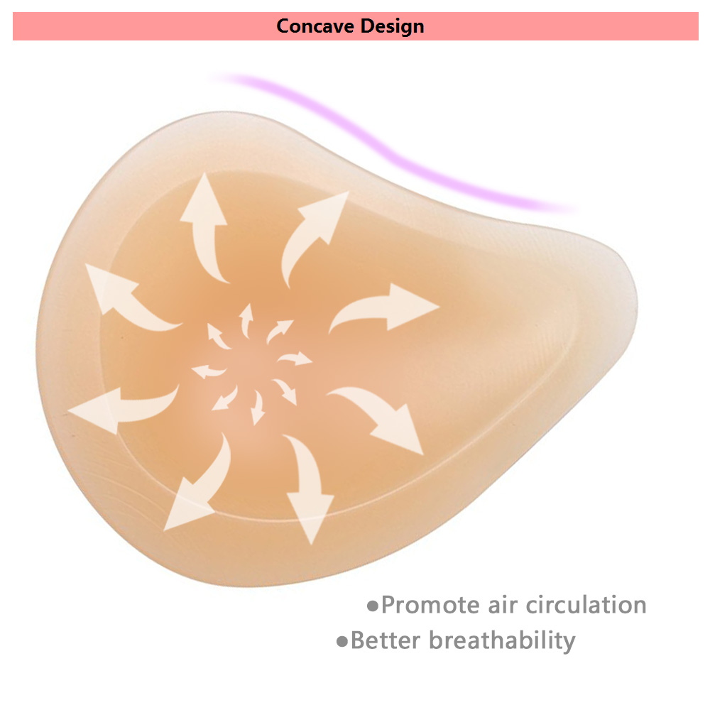 Asymmetrical Shape: The extension size of the asymmetrical shape breast form effectly covers the wound under the arm or on the chest wall, and enhance the breast to the most comfortable level you want.