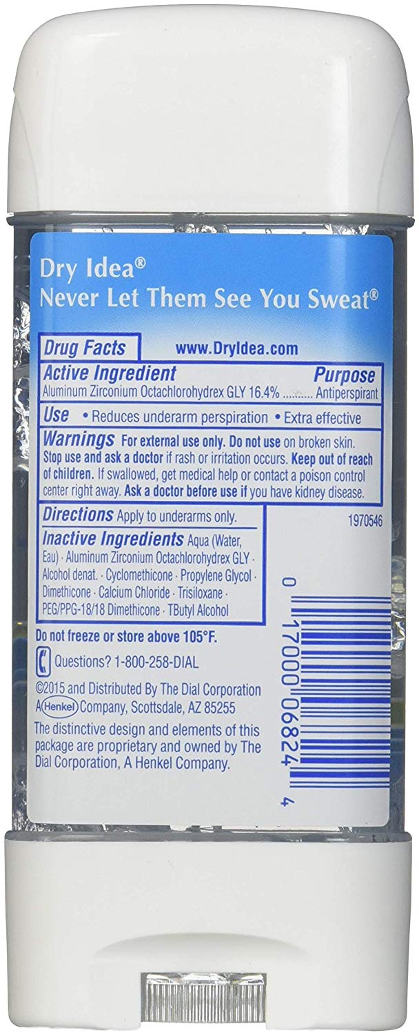 Dry Idea AdvanceDry Antiperspirant Deodorant Gels are hypoallergenic and feature pulse activated wetness protection with a no residue and stain protection formula for up to 72 hour odor protection.
