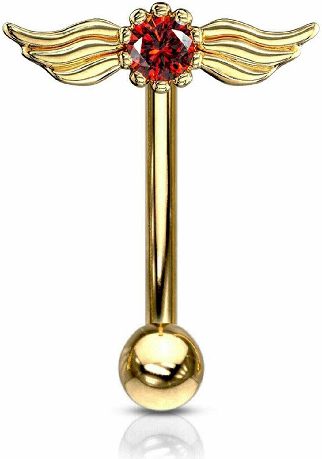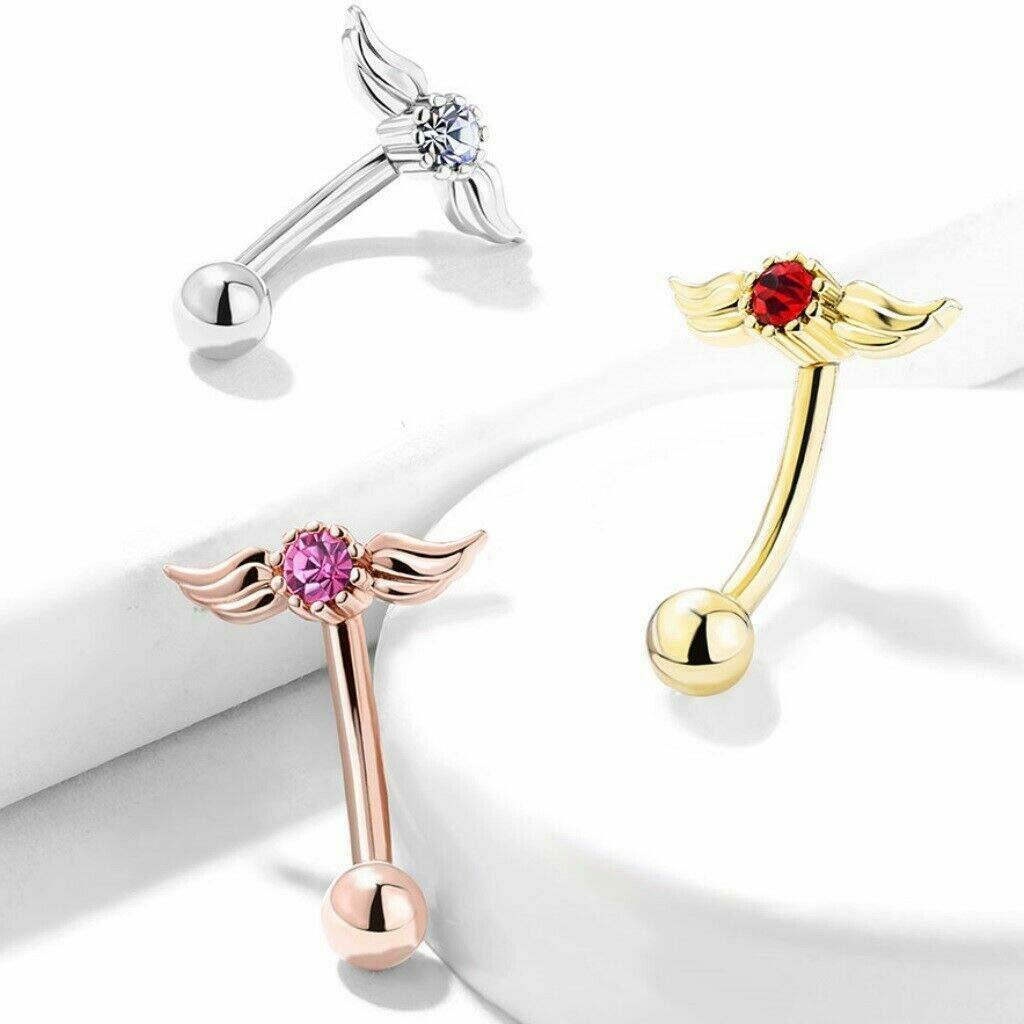 16GA Crystal Angel Wings Top 316L Surgical Steel Eyebrow Ring Curved Barbells