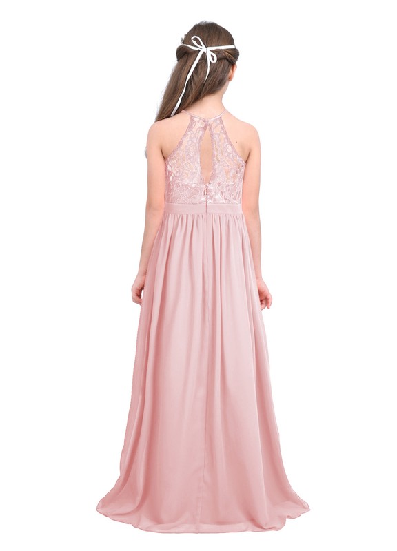 1 layer maxi length chiffon overlay is attached around the waist. Full lining. Beautiful and stylish dress for your girl.