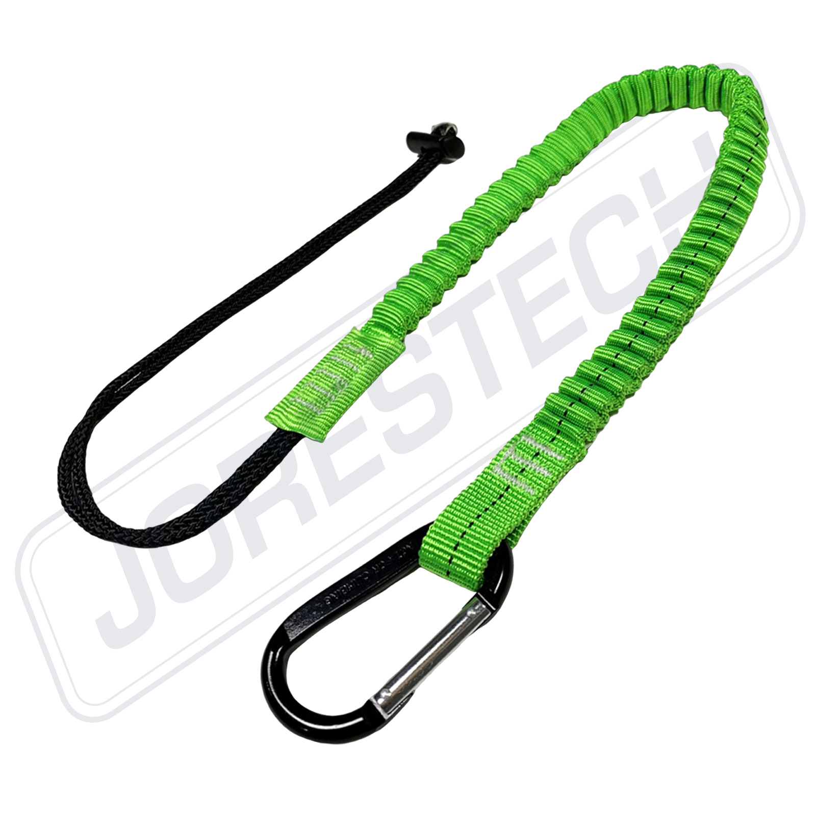 The JORESTECH® Tool Tether Lanyard allows workers to keep their tools secure while working at heights, preventing tools from becoming falling objects that could pose a threat to coworkers or pedestrians below. Equipped with a built-in, shock-absorbing stretch mechanism, it is specifically engineered to reduce the force an anchor body sees if a drop occurs. This lanyard features a single-action carabiner on one end, and a loop with a chord lock toggle stopper on the other. This easy-to-use mechanism allows for the lanyard to be attached to a work station, the user’s belt, or any other anchor point as needed, so that workers can keep their tools close at hand at all times.