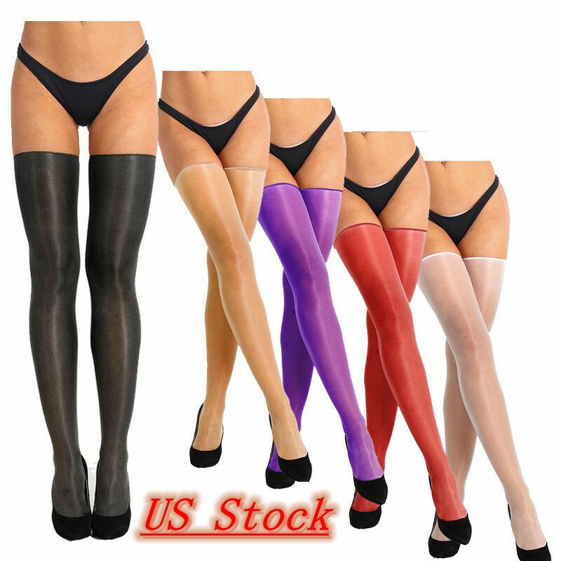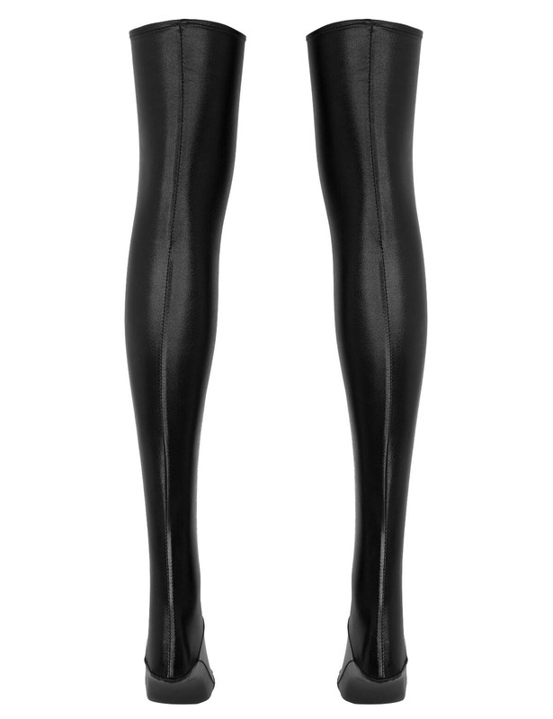 US Unisex Long Latex Rubber Stockings Sexy Thigh High Socks Tights Cosplay Black