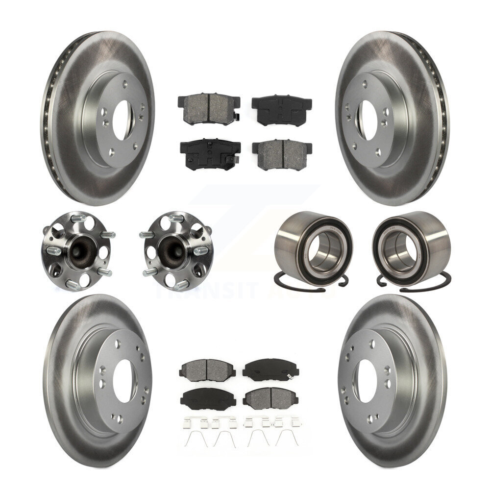 Transit Auto Front Rear Wheel Hub Bearings Assembly Coated Disc Brake Rotors And Semi-Metallic Pads Kit (10Pc) KBB-108193