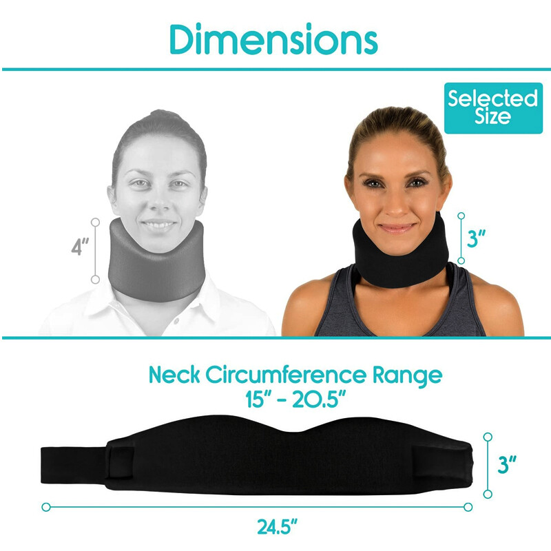 ✔ ADJUSTABLE NECK COLLAR: Cervical neck collar has a convenient hook and loop closure that allows you to adjust the neck circumference from 15" to 20.5". Neck support collar has a height of 4" on the sides, 4" on the chin, and 4" in the back.
