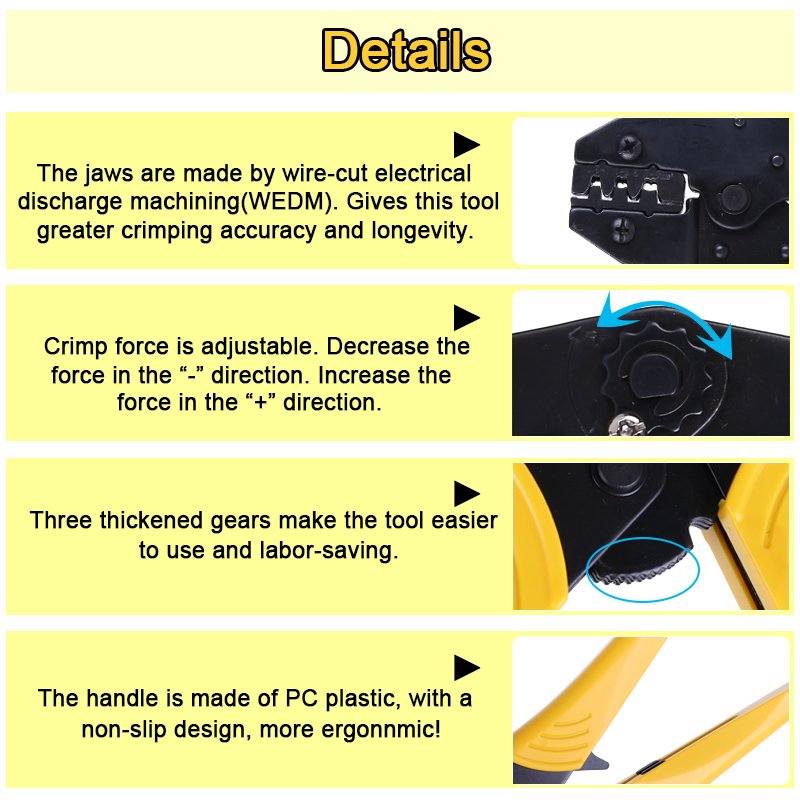 5.Due to best handle grasping position , light and compact stucrue and handle design ensure pefect crimping effect.