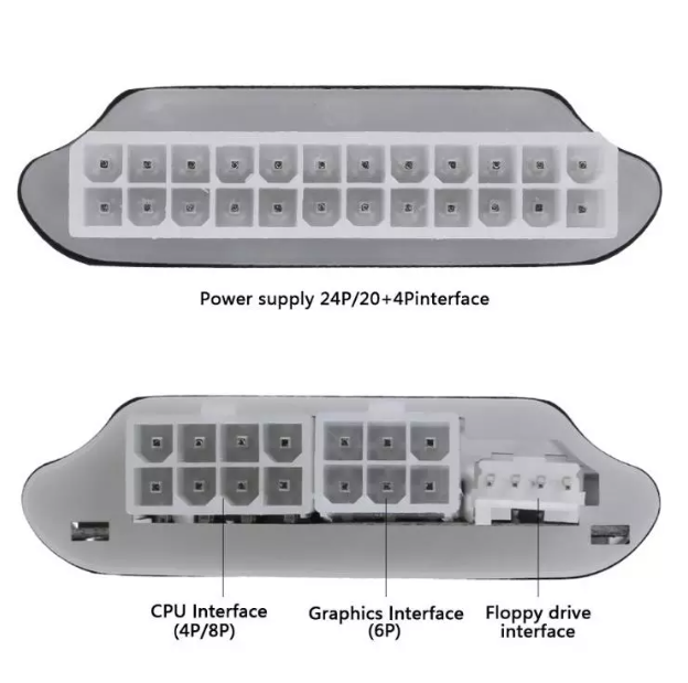 π§© Wide Connector Coverage β 20/24-pin ATX, CPU 4-pin (P4), 8-pin (EPS/Dual-CPU), PCI-E 6-pin, SATA, Molex (HDD), FDD