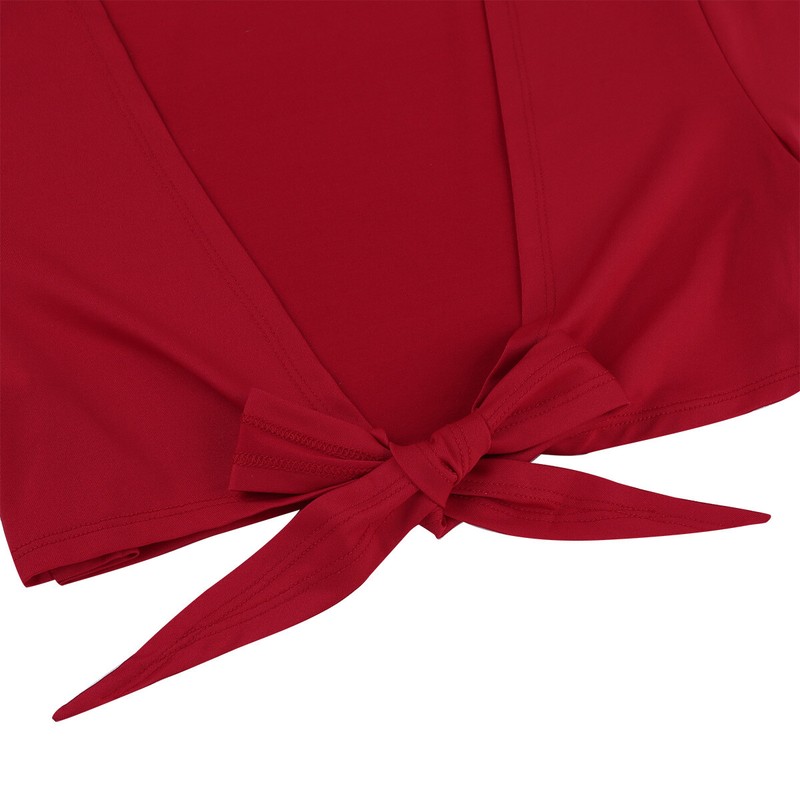 Deep V neck, short sleeves, tied up front design. Super soft, breathable and comfortable to wear.