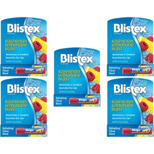 5 Pack Blistex Raspberry Lemonade Blast Fruit Blend Lip Balm SPF 15 .15 Oz Each