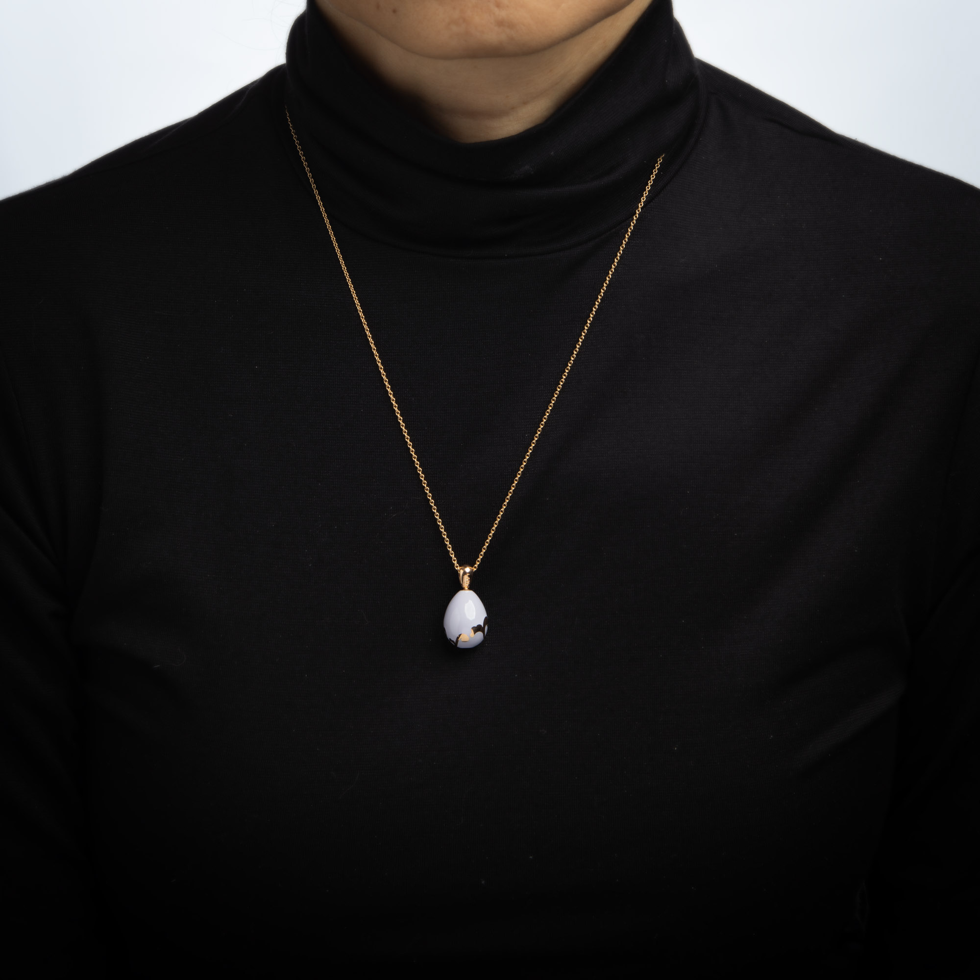 Size & Measurements: The egg pendant measures 1 inch in length (including the bale) and 1/2 inch wide. The Faberge chain measures necklace measures 20 inches in length.