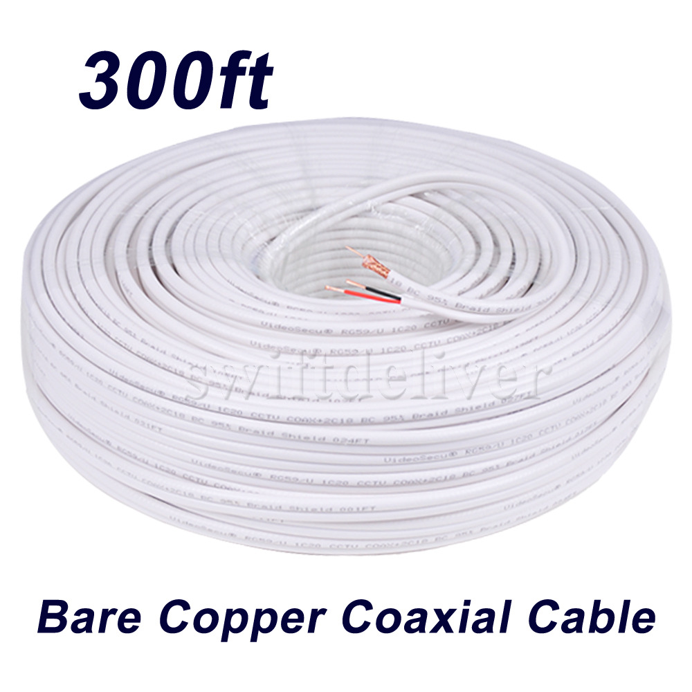 300 Feet RG59/U Coaxial 18/2 Siamese Video Power Cable Bare Copper Conductor