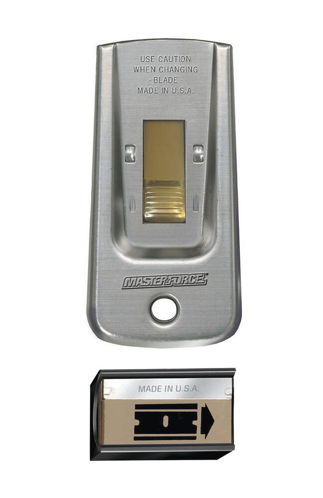 This heavy-duty, all-steel, safety glass scraper can be used to scrape paint from glass, tile, metal and other hard surfaces. The exclusive, intermediate safety position means the blade won't slide out while you're using the scraper. Included are 5 replacement single edge blades in a patented plastic dispenser.