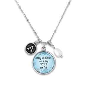 Custom Maid of Honor for a Day Sister For Life Pearl Silver Necklace Choose an Initial