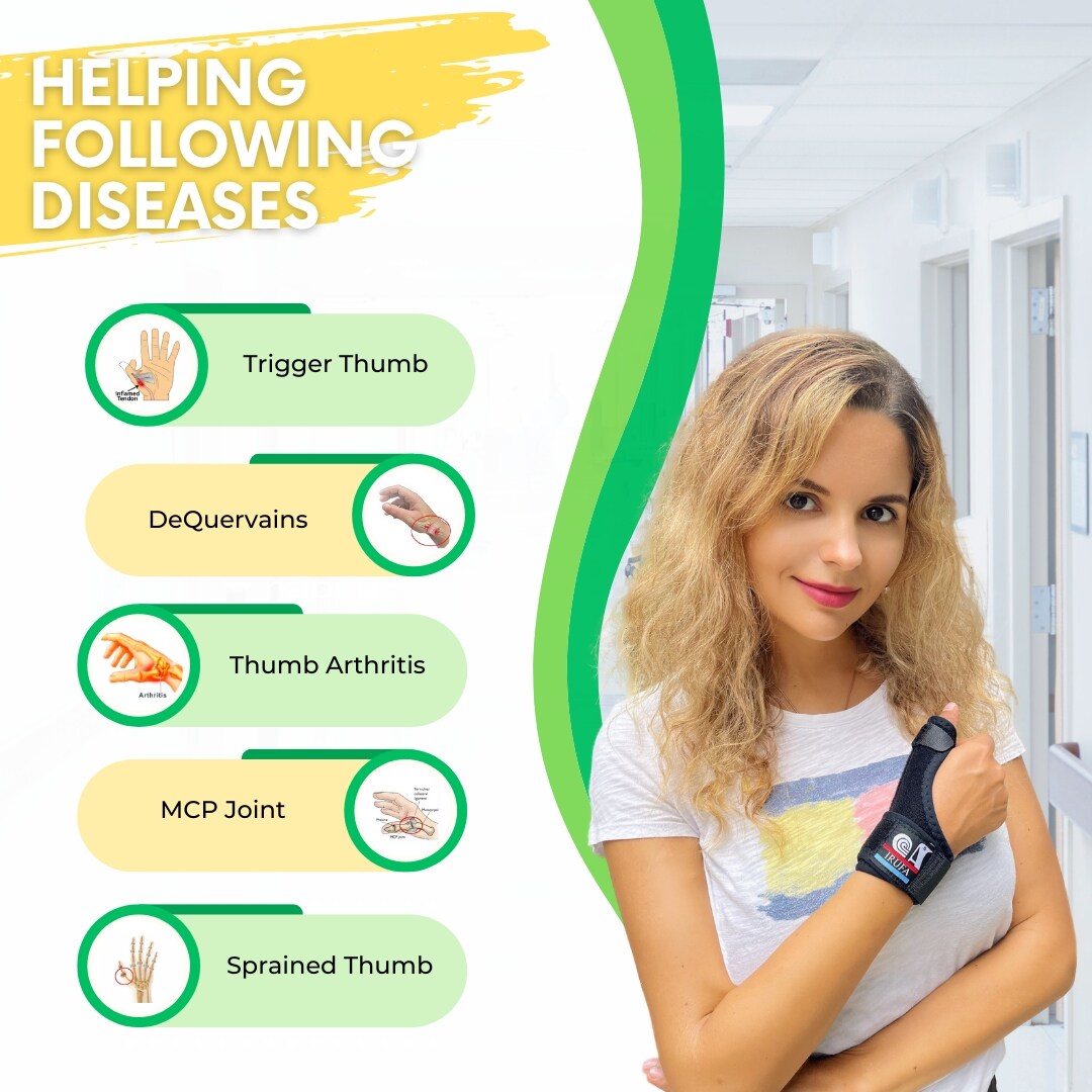 Specific Uses for Product: DeQuervains, Trigger Thumb, MCP Joint, Thumb Pain, Dislocated Thumb, Skier’s Thumb, Thumb Arthritis, Sprained Thumb, Broken Thumb, Game Keeper’s Thumb |