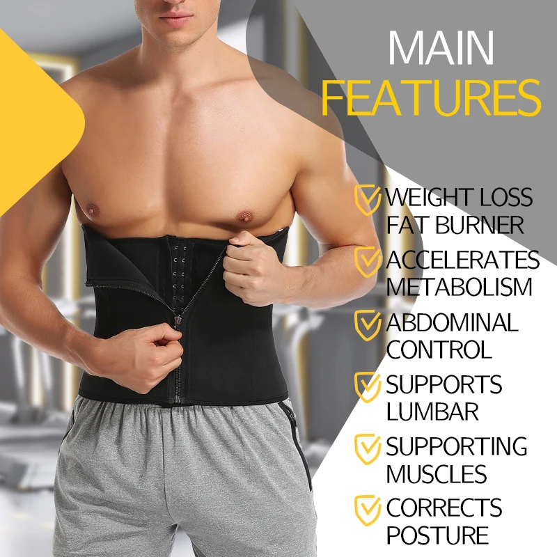 · Color: Black,Gray · Material: Shell:Polyester100%;Lining:Neoprene100% · Size: S,M,L,XL,2XL,3XL · Bones: 6 steel bones · 🔥 SPECIAL DESIGN 🔥 -- Underbust corsets design give a free space so that you could do exercise and breath freely. It can be worn inside and outside your favorite clothing, giving you a more natural look and shape. · 🔥 STRETCH 100% NEOPRENE 🔥 -- Made of 2.5mm high-quality 100% neoprene fabric with great stretch, much soft and comfortable to wear. It provides wide cover for the stomach for a perfect fit, best support, and enhanced comfort. · 🔥 OUTSTANDING WIDEN DESIGN 🔥 -- The abdomen double-layer compression design and widen design is wider than generic items, more area covered, more calories burned, more sweat comes, makes the abdomen effect more obvious. · 🔥 BACK SUPPORT & POSTURE CORRECTION 🔥 -- Signature compression and 6 internal flexible steel bones hold your back and abdomen tight, giving you the back support, reducing waist line, preventing garment roll-up and really helping you with back pain and proper posture. · 🔥 REMARKABLE EXERCISE EFFECT 🔥 -- This Men Workout Waist Trainer has excellent performance in burning fat. It helps you sweat to eliminate toxins, accelerate calorie burning process, tummy control, weight loss, and promote beer belly recovery. Maintain muscle warmth and support to prevent fatigue and injury after exercise. · 🔥 PREMIUM FAT BURNING BELT 🔥 -- This waist belt optimizes your metabolism and burns extra belly fat. Designed with superior craftsmanship to retain optimal body temperature in the abdominal area, assisting in fat loss and the improved burning of calories during exercise. · 🔥 ENHANCED WEIGHT LOSS WRAP 🔥 -- Increased body heat helps to trim you removing excess sweat water weight during exercise while the lightweight material prevents heat stroke. It is the best fitness equipment for all kinds of exercises in the gym. · 🔥 SUITABLE OCCATION 🔥 -- This male gym muscle belt is best for zumba, yoga, gym, fitness, running, cycling and much more sports,fat burn and lose weight and body building, reduce your belly size and enhance pressure on the belly, helps you have a nice body shape.