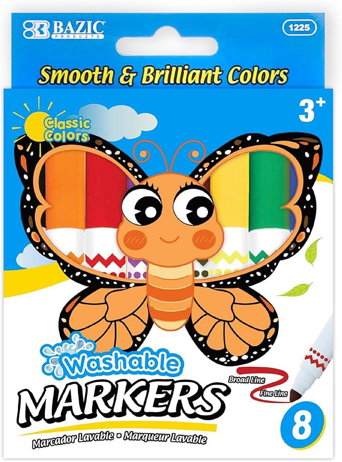 Let your child's imagination run wild with these premium markers. These markers are washable, making cleanup a breeze. When paired with a new coloring book or blank sheets of paper, these markers will keep your child occupied for hours. These markers also make a great addition to any scrapbooker's tool box.