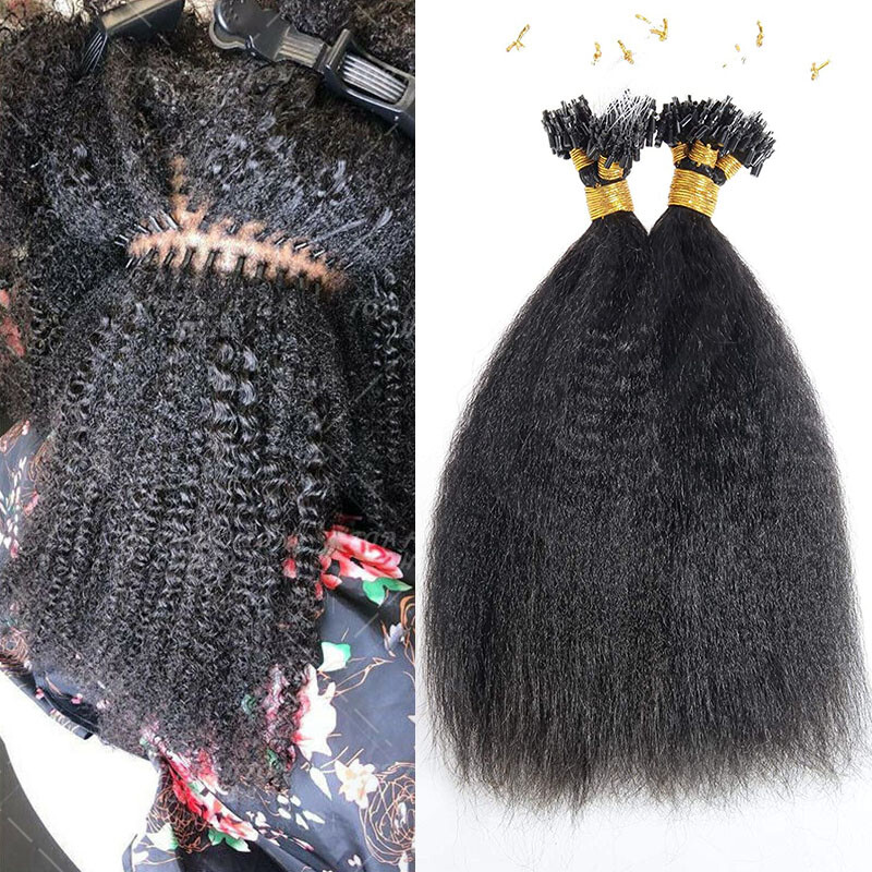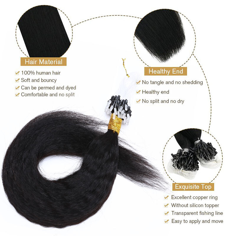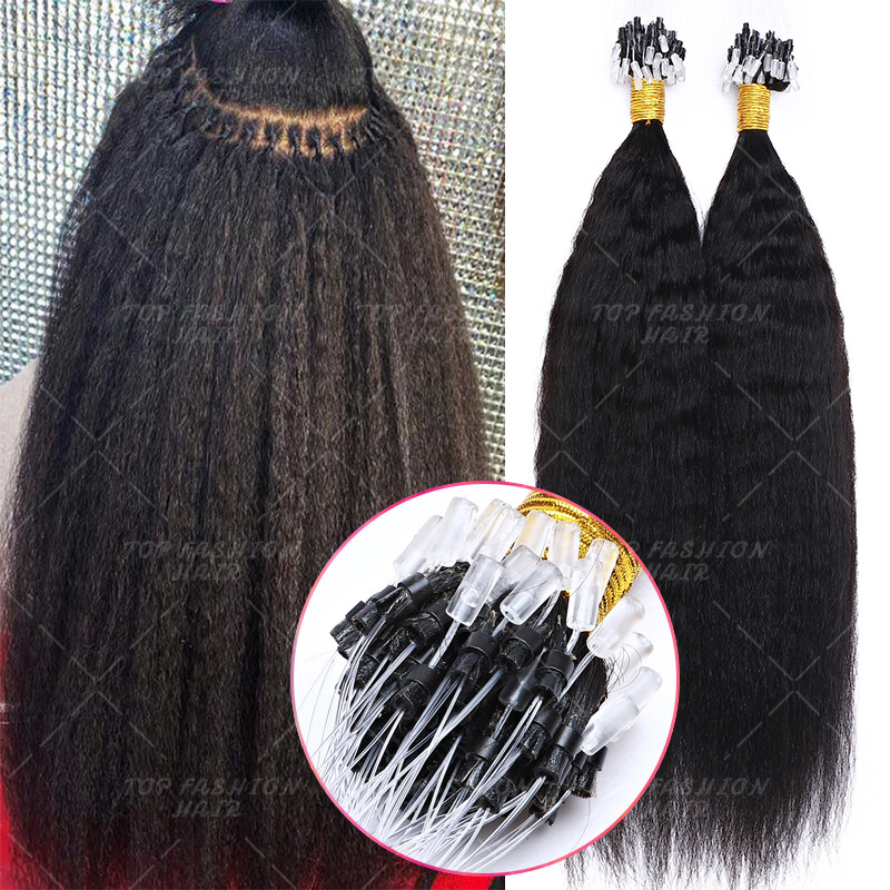 Kinky YAKI Straight Virgin Human Remy Hair Extensions Micro Loop Ring I Tip 300S