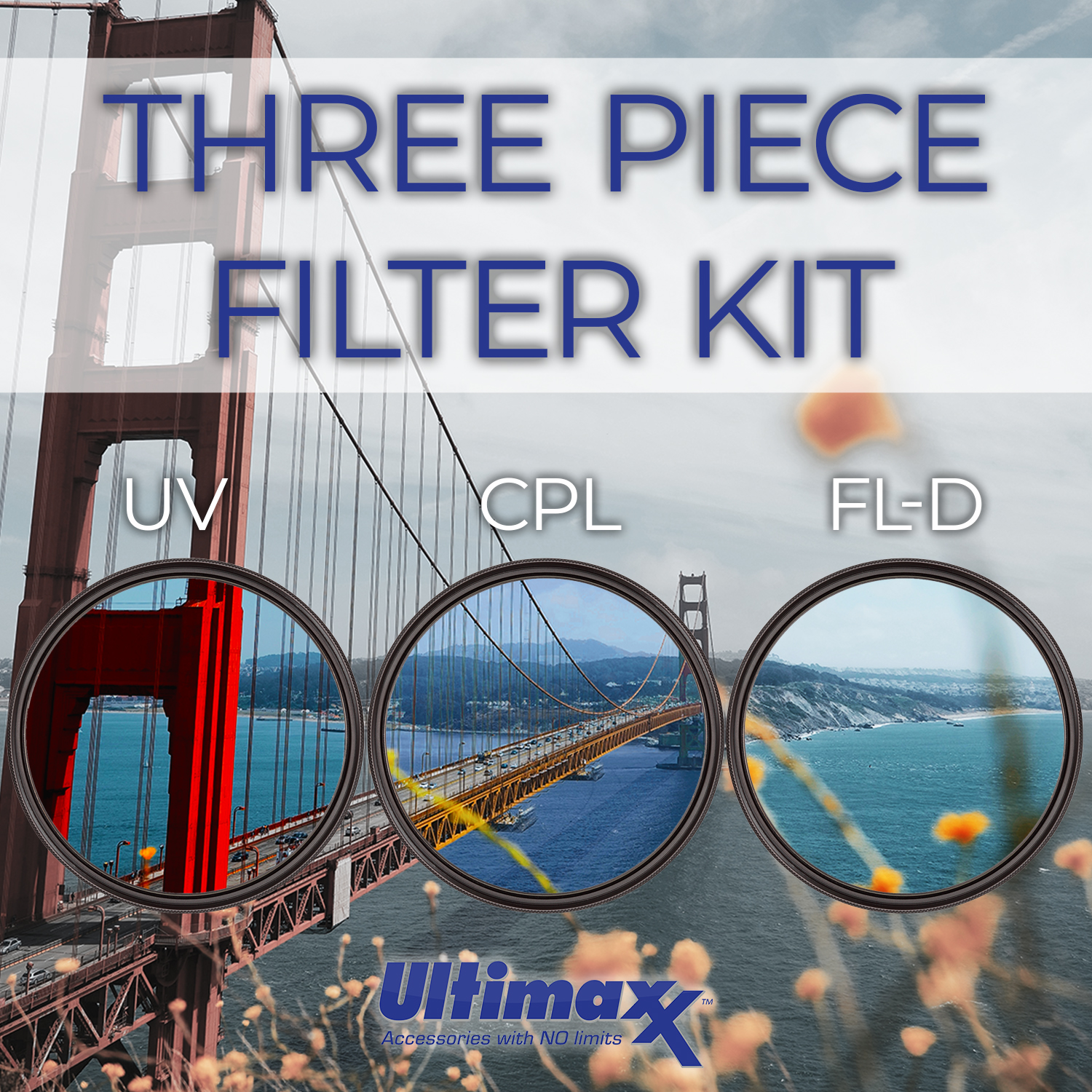 | Fast shipping ULTIMAXX 3 Piece Multi Coated HD Filter Kit (UV, CPL, FLD) for Canon Nikon Sony |