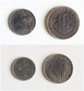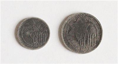 3. Reich, Getto Litzmannstadt, 5 + 10 Mark Quittung 1943, der Älteste der Juden, übliche Prägeschwäche, Korrosionsflecken und Belag !