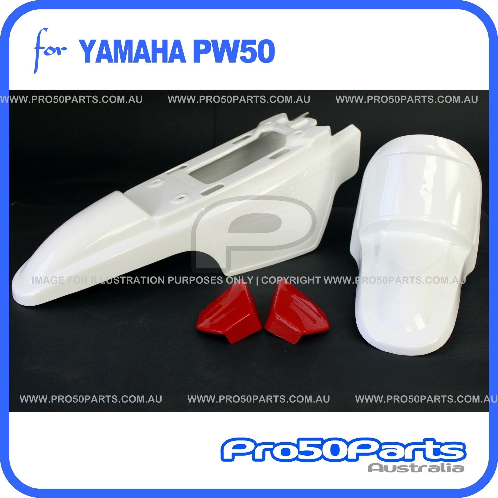 * The Yamaha PW50 made in 1981-1985 have different shapes of plastic fender cover, fuel tank, and seat. To replace with this latest model of plastic fender setup. A full set of plastic fender cover, fuel tank, and the seat is required and an extra Mounting Bracket & Bolts set may be required as well. * Conversion kits are available here, https://www.pro50parts.com.au/pw50-conversion-mounting-kit-fuel-tank-front-fende?preview=y