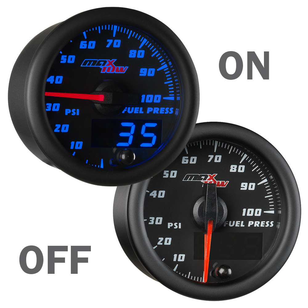 Get the best of both worlds with MaxTows Double Vision Gauge Series which features ultra-bright LED readouts on simultaneous analog and digital displays. The Double Vision Series provides form and functionality with precise gauge readings and a unique design that will enhance the look of your trucks cabin. These cutting-edge high performance gauges feature a black gauge face and blue LED display. With every 2-1/16 (52mm) gauge youll experience incredibly accurate readings by utilizing either the illuminated red needle or responsive digital display. MaxTow gauges also feature Daytime Dimming Mode with 3 Customizable Brightness Settings, and Nighttime Dimming Mode which has 3 Customizable Brightness Settings. By adjusting the levels you can get just the right amount of lighting for optimal viewing, no matter what time of day or night.