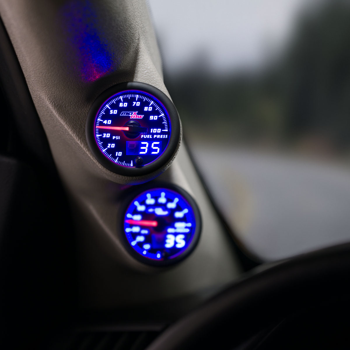GlowShift also stocks a wide variety of pillar pods for a vast array of specific vehicles while offering single pillar pods, dual gauge pods as well as triple gauge pods. All mounting hardware required for a pillar pod setup is included. Our car specific gauge pods will comfortably fit 2 1 16 gauges while our selection of universal pillar pods include both 52mm and 60mm pillar pod gauges sizes. Some of our most recently released models include our new nitrous pressure gauge, digital boost gauge as well as new styles of pyrometers and egt gauges. Every gauge (including our turbo boost gauge) is crafted with the highest quality in mind and includes all vital senders and parts for a smooth installation.