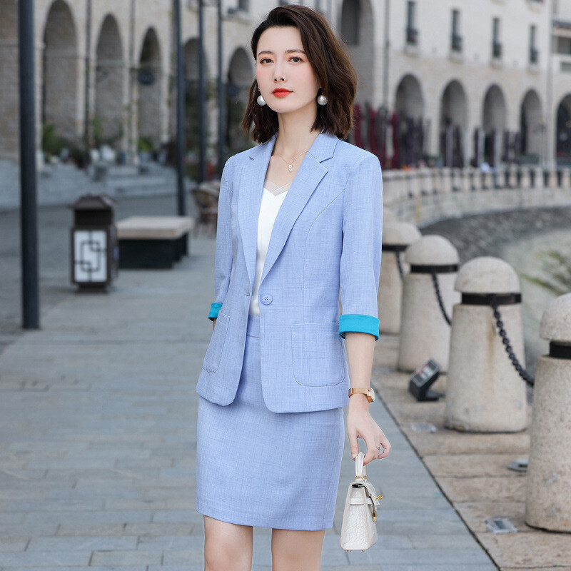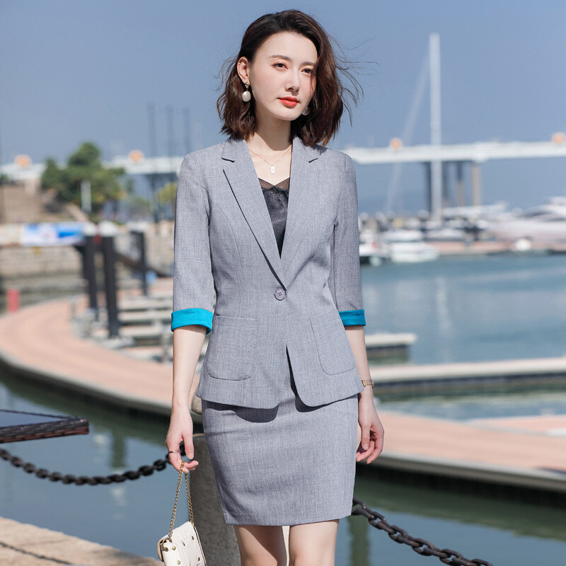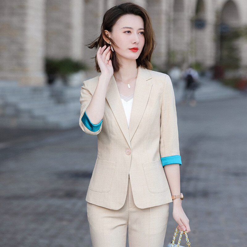 2 Piece Women Office Summer Slim Fit Business Blazer Set Pants
