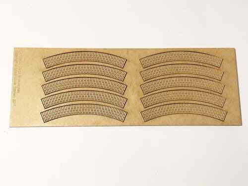 A pack of 10 laser cut Brick Arches in OO / 1:76 scale. For use with our LX121-OO Engine Shed Doors. Precision cut from 0.8mm laserboard, with engraved brick detail. Based on the prototype arches on the St Blazey Roundhouse in Cornwall. Ideal for scratch-building and upgrading kits by other manufacturers too.