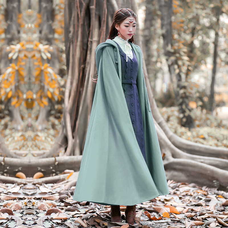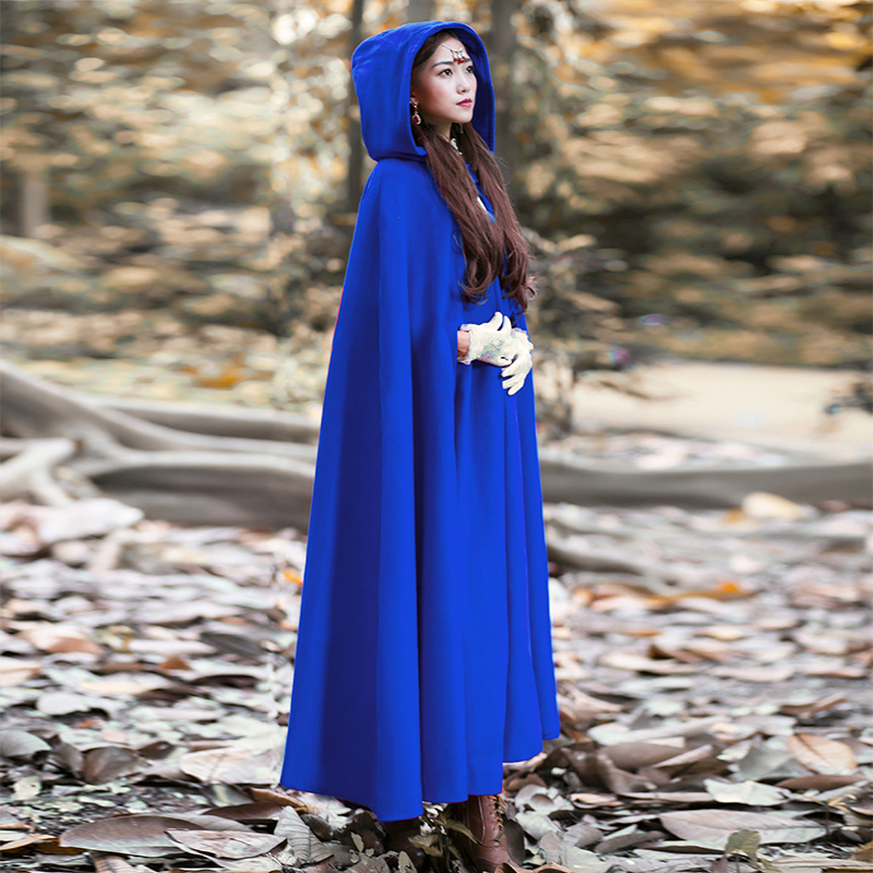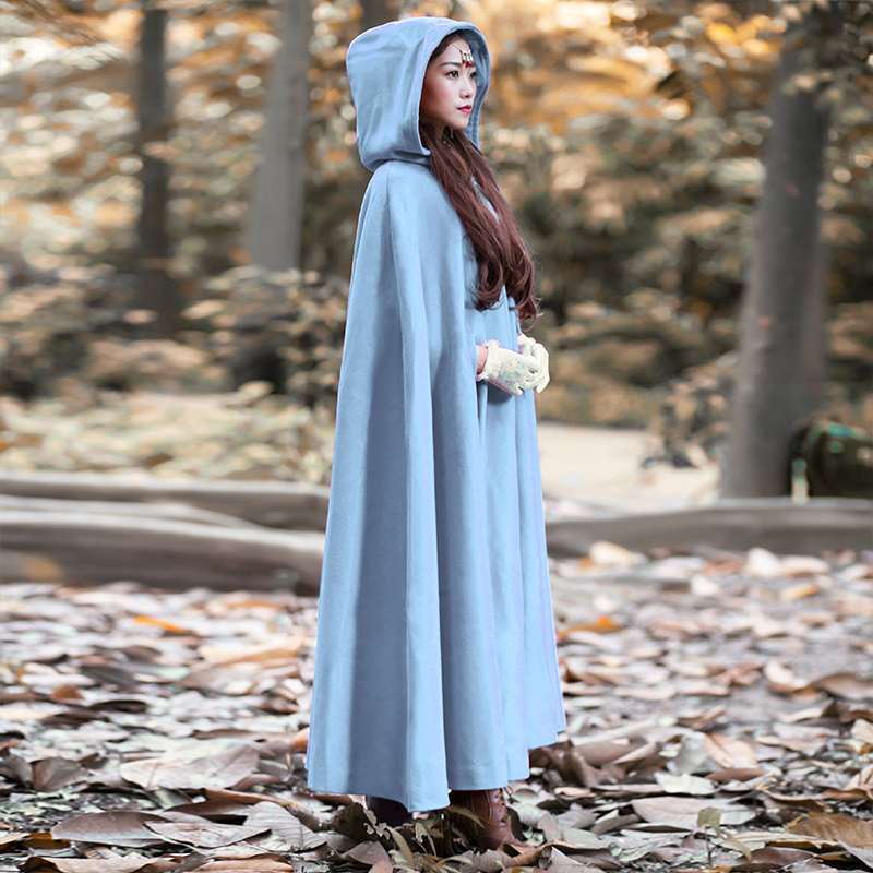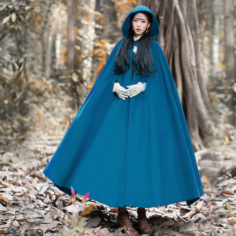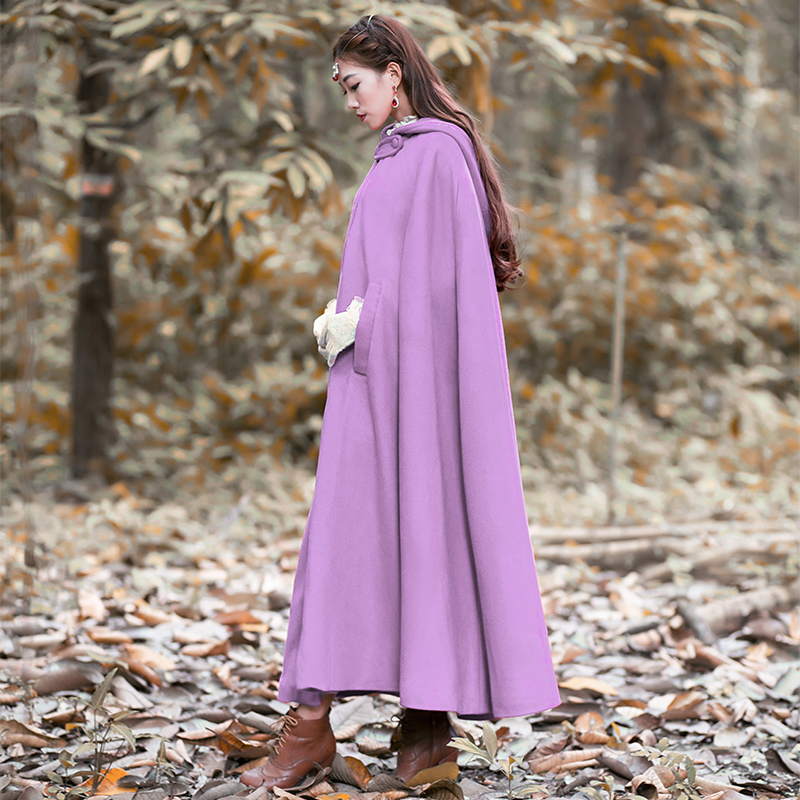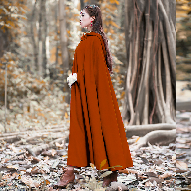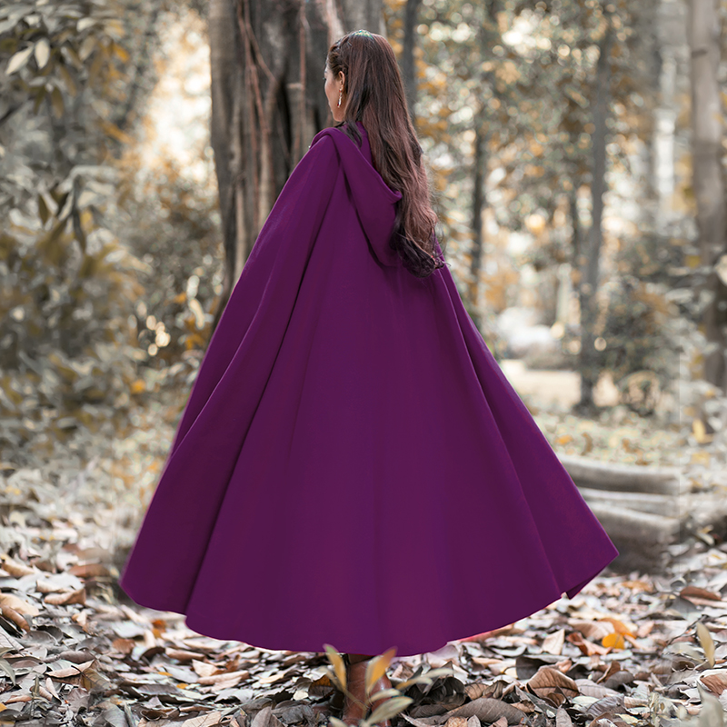 Women Wool Blend Hooded Cloak Vintage Full Length Cape