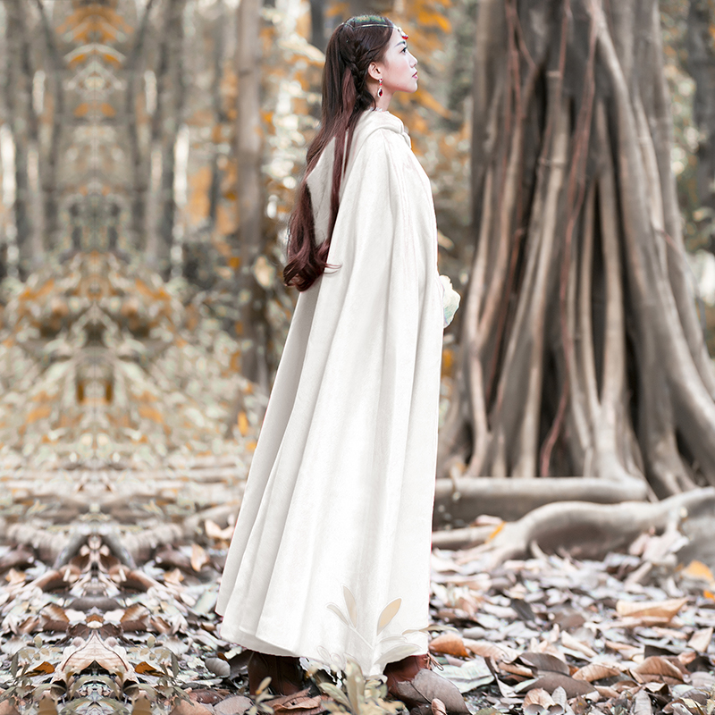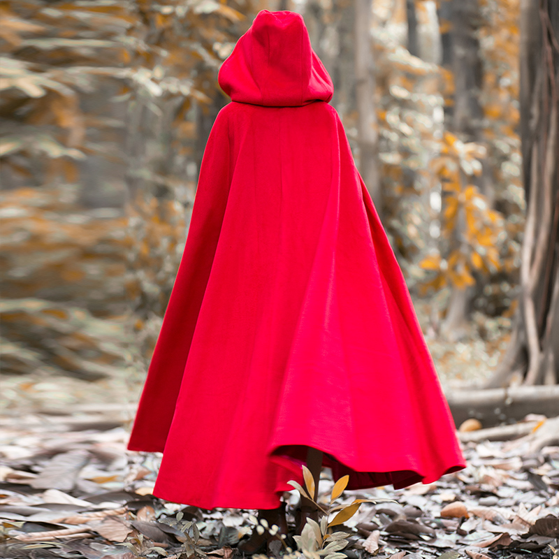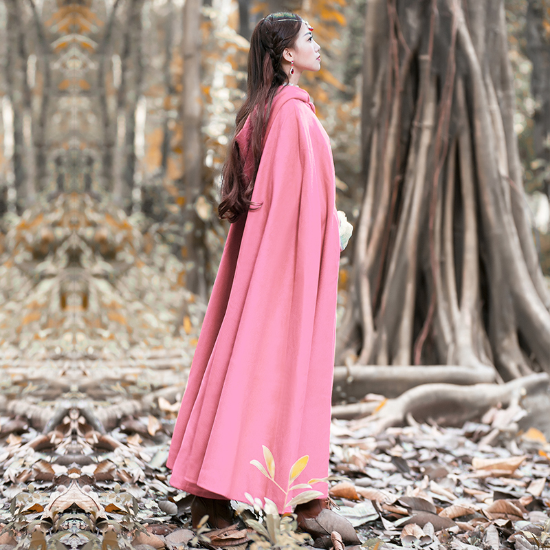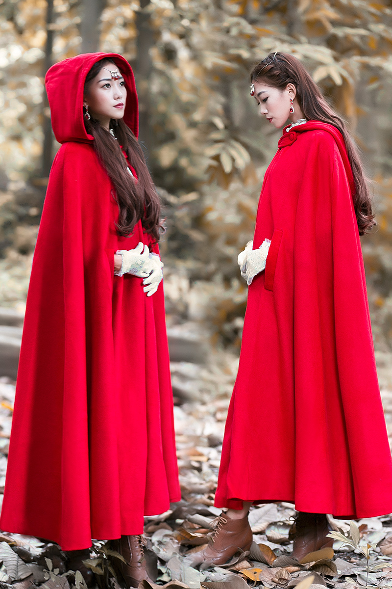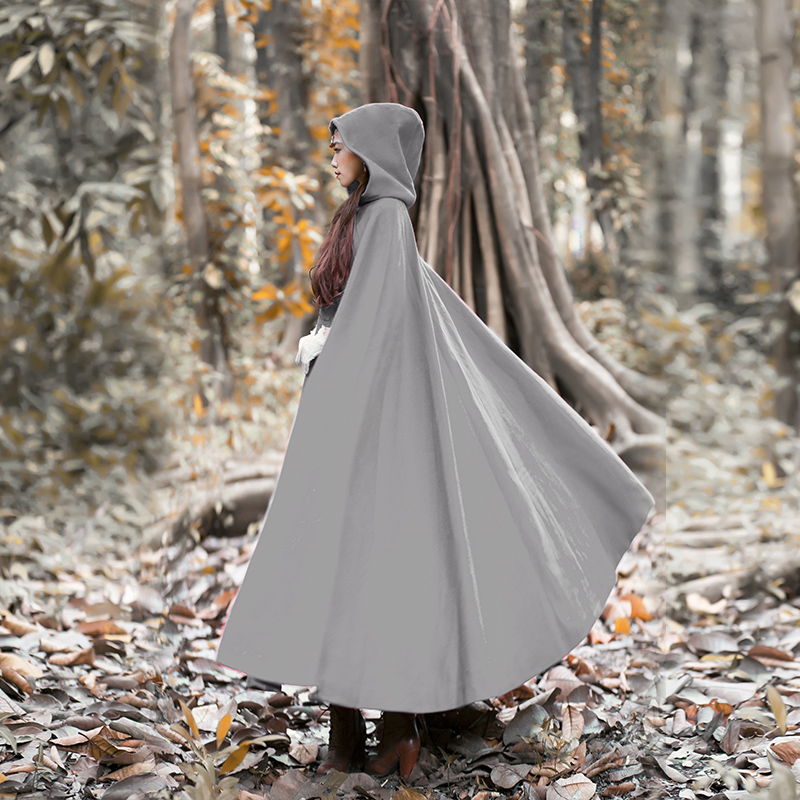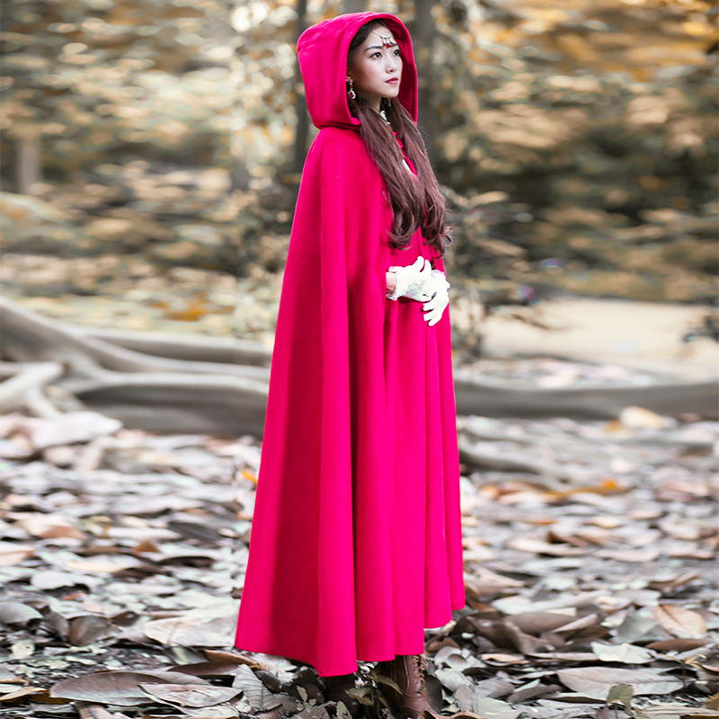 Women Wool Blend Hooded Cloak Vintage Full Length Cape
