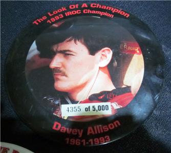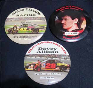 1993 6" LE LARGE NASCAR BUTTONS KYLE PETTY DAVEY ALLISON (2). App.6" in diameter, very good condition..