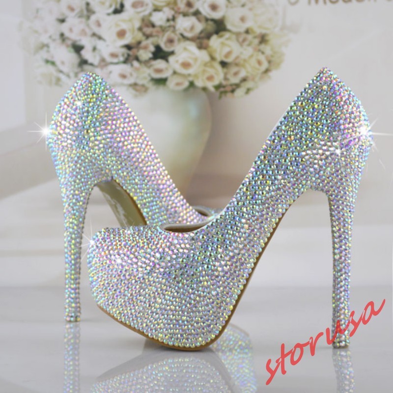 Womens Crystal Wedding Shoes Platform High Heels Bridal Shoes Rhinestone Pumps