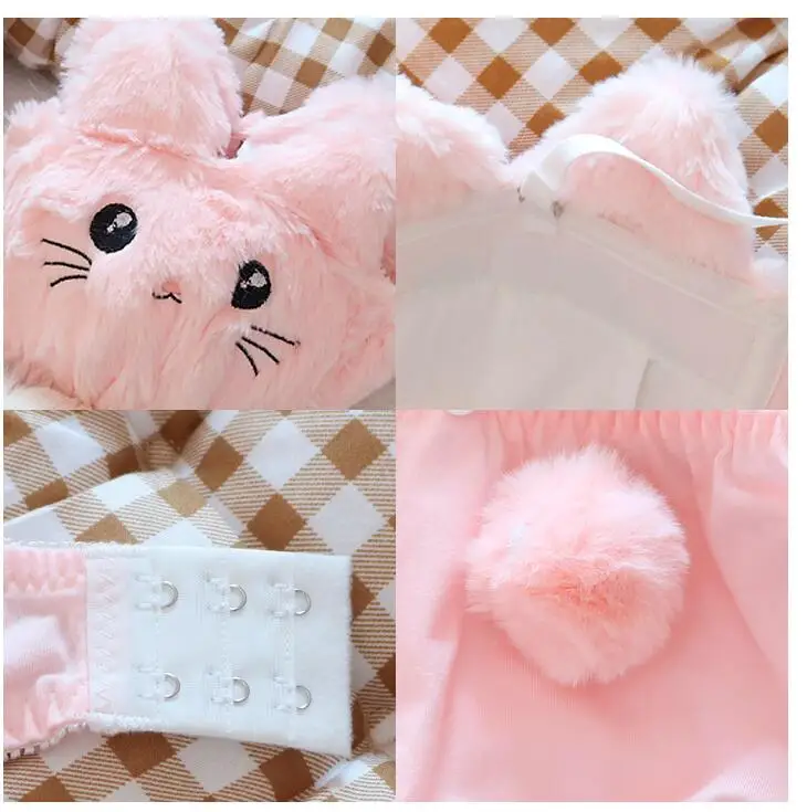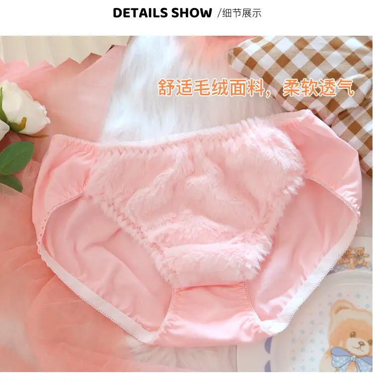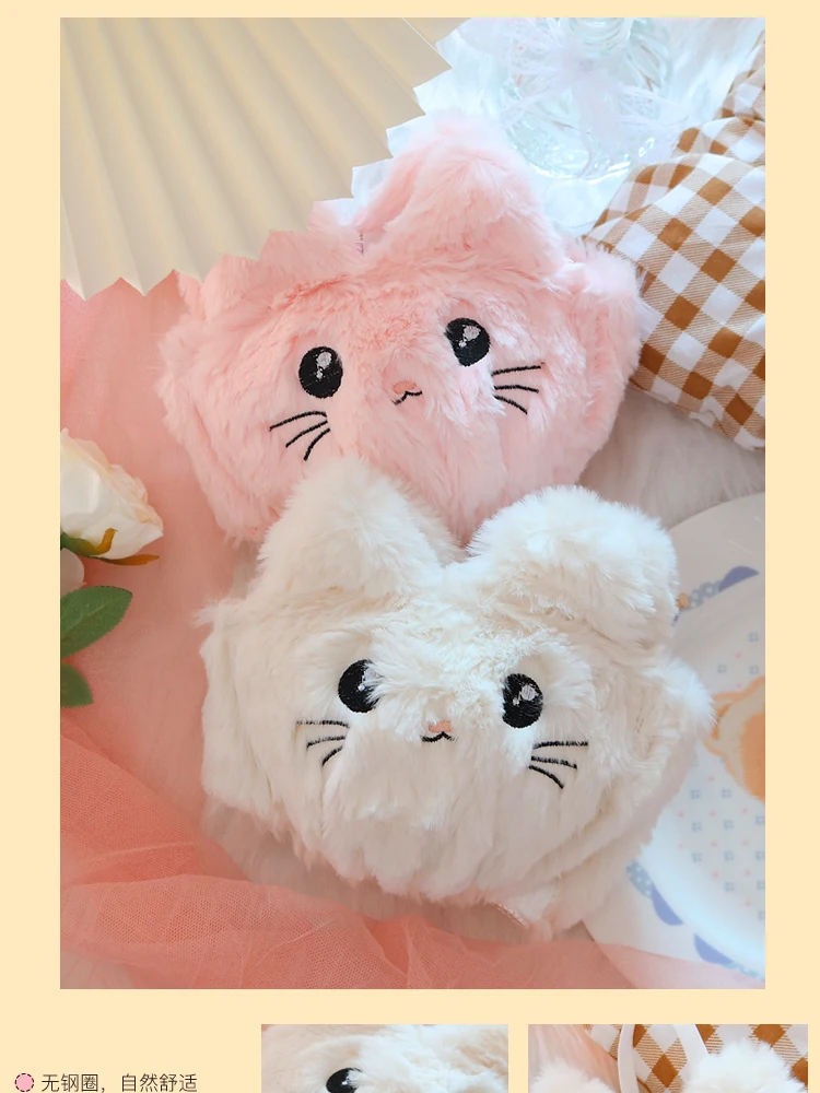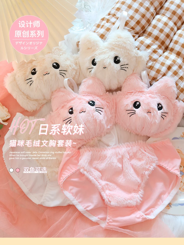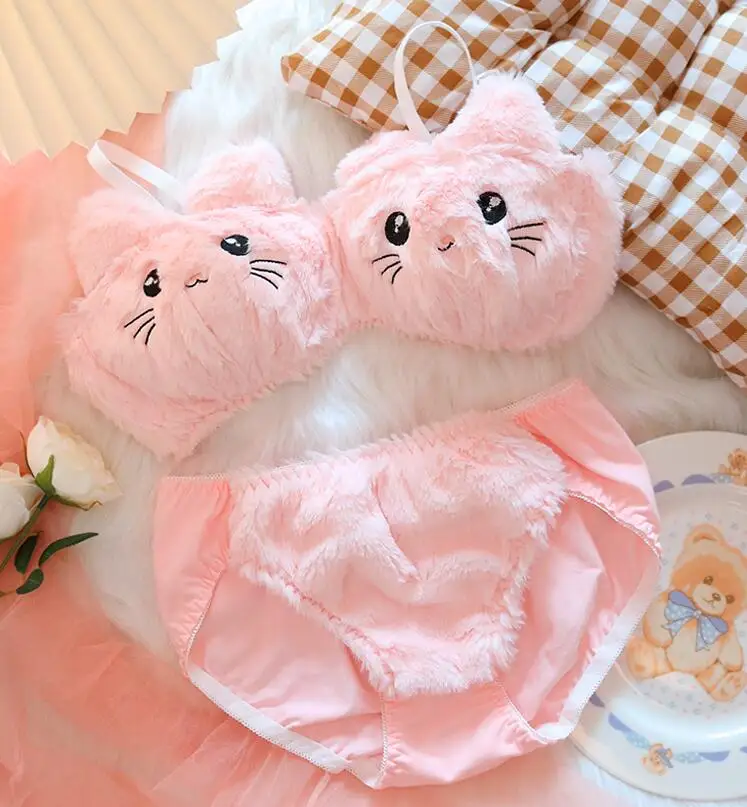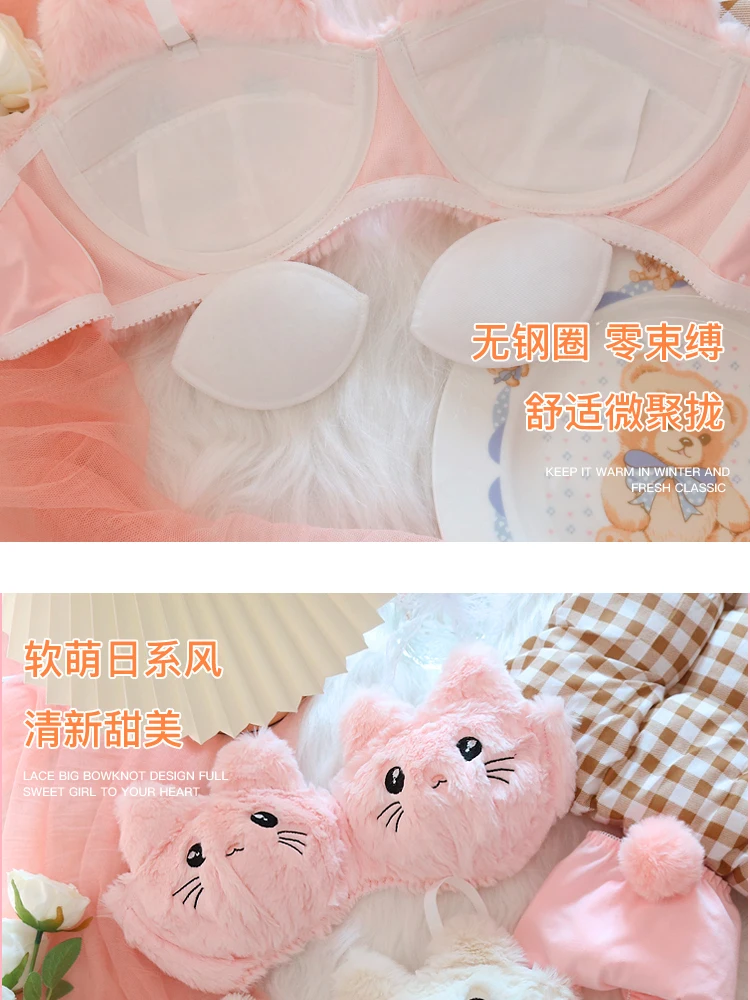 Winter Fluffy Set Cat Girl Bra & Panties Set Wirefree Soft Underwear Lace Trim Sleep Intimates Set Kawaii Lolita Fairy Kei A WONDERFUL ITEM FOR SWEET GIRLS.