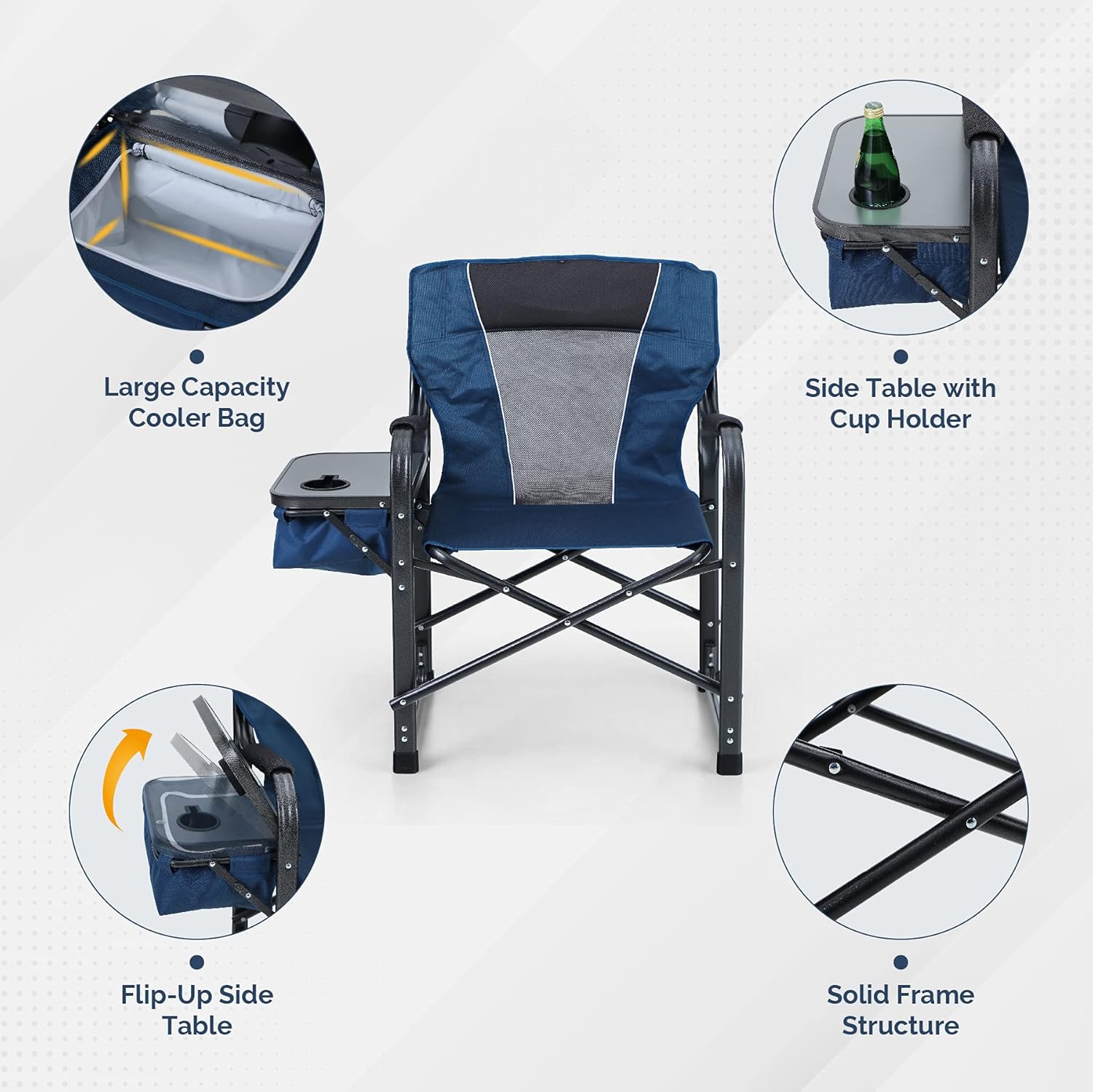 ⭐Side Table & Cooler Bag: Portable chair with side table offers more convenient storage and placement,cup holder on the armrest can keep your drink close, the cooler bag allows you enjoy outside cool when in summer time.