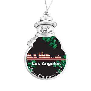 Los Angeles City Skyline Vacation Silver Snowman Christmas Ornament Gift
