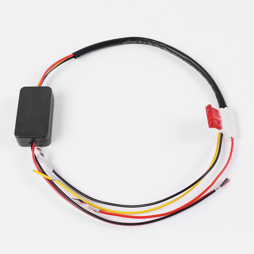 2. Connect the red and black wires of the fuse input end of the controller to the positive and negative poles of the battery, and connect the red and black wires of the output end to the positive and negative poles of the daytime running lights.