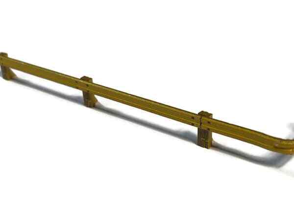 A pack of 10 lenghts of Armco style roadside & depot safety barriers with a wide range of uses on your OO scale model railway layout. Perfect for detailing a maintenance depot, car park, roadside verge or central reservation.