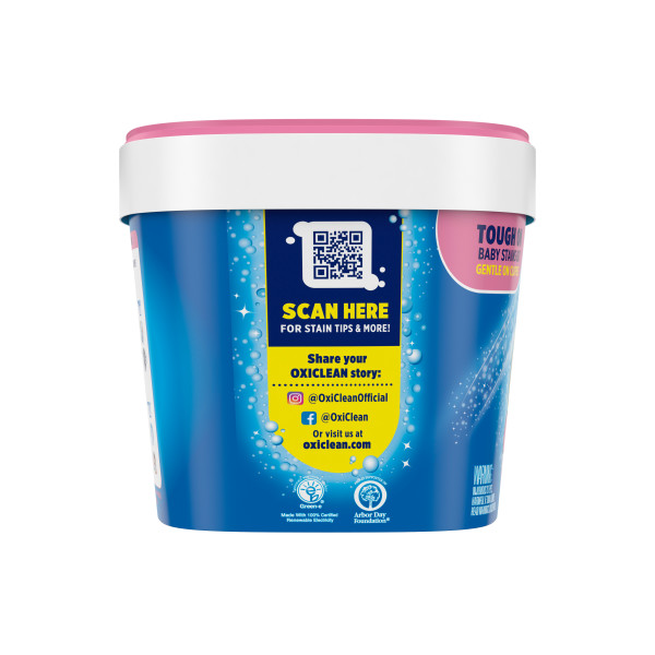 Wherever there’s a baby, there are sure to be stains. OxiClean Baby Stain Soaker Powder delivers effective stain removal that is gentle on baby’s clothes without perfumes or dyes. Activated by water, its ingredients unleash bubbling oxygen power and improve your regular detergent’s cleaning ability. Save yourself time and energy, with the power of OxiClean™ Baby Stain Remover on your side. Its oxygen-based, water-activated formula safely removes dried-on formula and baby food, juice spills and diaper stains from all your baby’s fabrics. Plus, it’s 100% chlorine, fragrance and dye-free. Use as a presoak and add it to every load! You’ll see stains disappear!