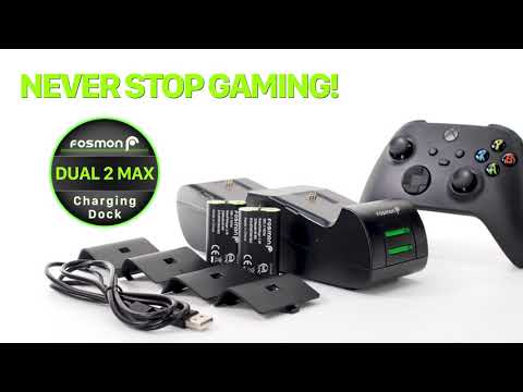 Fosmon's DUAL 2 MAX Charging Station for Xbox Controllers replaces your Xbox controllers' battery housing, turning them into rechargeable battery packs. Simply plug the base into an open USB slot on the Xbox console, or into a USB charger. Compatible With Xbox Series X/S, Xbox One / One S / One X / Elite Controllers. Not compatible with the Xbox Elite 2 controller.