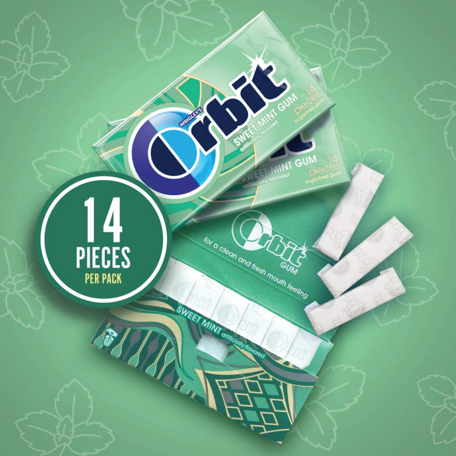 Boost your confidence with a clean mouth and fresh breath. ORBIT Gum Sugarfree Chewing Gum is made with a delicious flavor for a clean and fresh feeling, so you're ready to seize the moment whenever it arrives. Stock up your car or pantry with this delicious sugarfree gum. ORBIT Gum is also great for Christmas stockings or fun birthday gifts. With ORBIT Gum, it's your time to shine.
