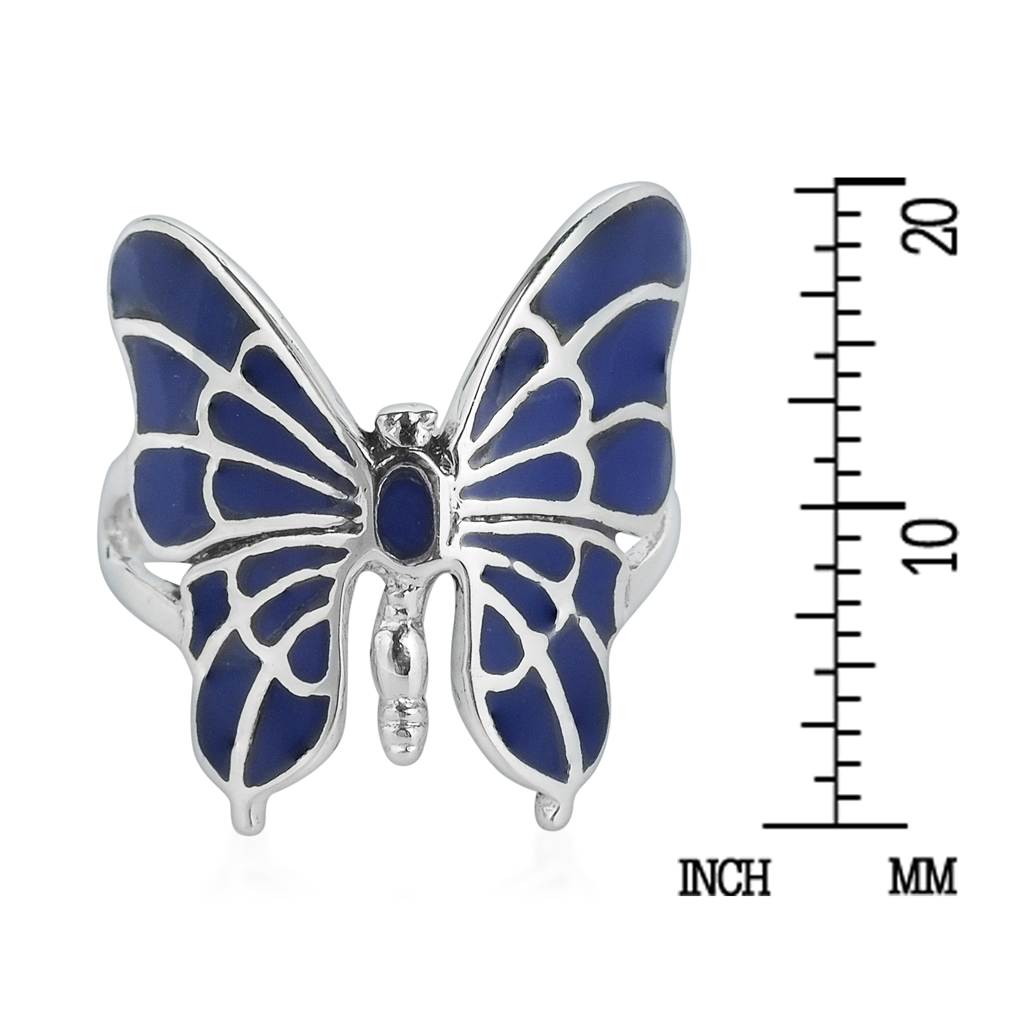 Exotic Graceful Butterfly Blue Lapis Inlay Sterling Silver Ring-6 |