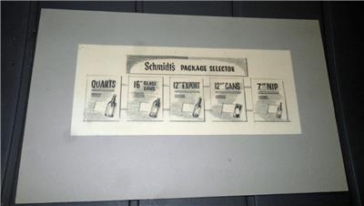 VINTAGE SCHMIDT'S BEER PACKAGE SELECTOR HAND-DRAWN DESIGN PROTOTYPE. It measures 8" by 5". It came from a former employee in Phila.